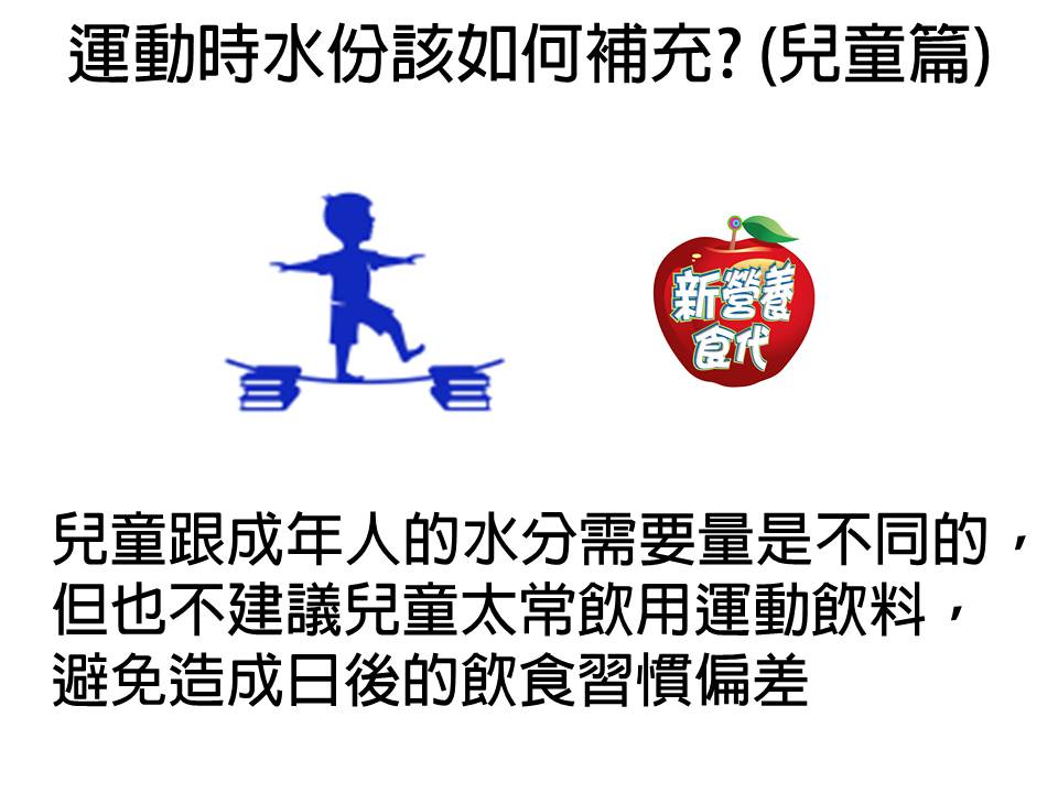 根據美國兒科學會的資料,依據運動前、中、後而有不同的水份補充建議。