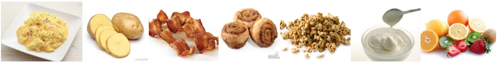 水果→低脂優格→低脂燕麥→肉桂捲→培根→馬鈴薯→起司炒蛋
