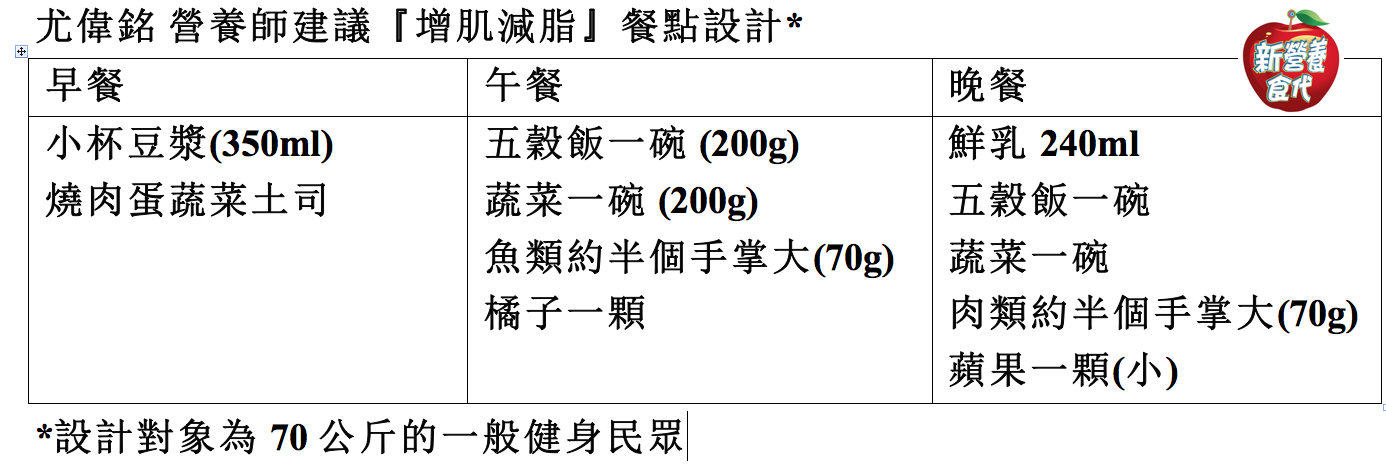 尤偉銘營養師的增肌減脂餐